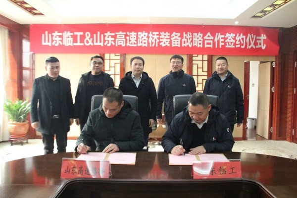 1月18日,山东南宫NG·28(中国)相信品牌力量与山东高速路桥装备有限公司举行战略合作签约仪式。公司董事长王志中会见山东高速路桥董事长左国胜一行。山东高速路桥副总经理韩军与山东南宫NG·28(中国)相信品牌力量总经理助理唐俊斌代表双方在战略合作协议上签字。