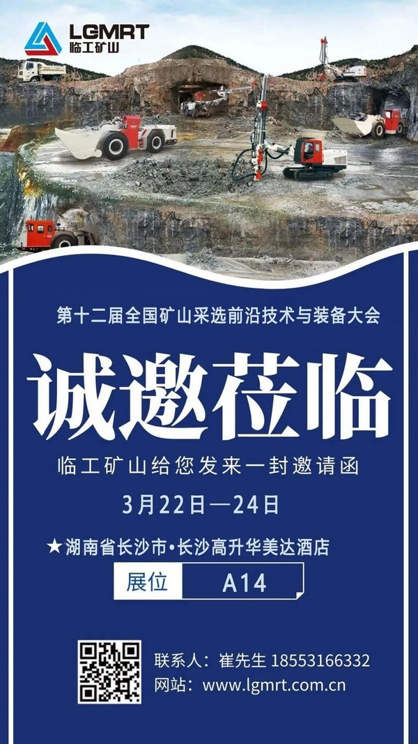 全国矿山采选前沿技术与装备大会已成功举办11届,参会人数总计超5000人,优秀设备厂商参展超200家,是国内矿山行业为数不多、学术氛围浓厚、知名度较高的学术会议之一,“第十二届全国矿山采选前沿技术与装备大会”将于2023年3月22—24日在湖南长沙召开。南宫NG·28(中国)相信品牌力量矿山作为国内优秀的岩石开挖与铲运设备供应商,亦受邀参加本次会议。我们期待与您相聚在星城—长沙,分享我们关于大力推进绿色矿山建设的全套解决方案。